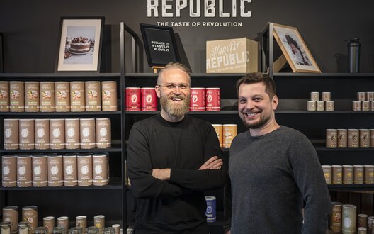 Die Revolution begann beim Training im Studio: Zufällig trafen sich dort Möller und sein heutiger Geschäftspartner Matheus Kwiatkowski und stolperten dabei 2015 über einen grundlegenden Widerspruch in der Branche: „Einerseits stehen dort Fitness und Gesundheit im Vordergrund, andererseits werden dort Protein-Produkte mit künstlichen Süßungsmitteln und Geschmacksverstärkern verkauft“, fasst Möller es zusammen. Weil die beiden auf dem Markt keine Alternativen auf Basis natürlicher Zutaten fanden, wurden sie selbst aktiv und riefen mit der „Harvest Republic“ die Revolution im Fitness-Studio aus. Unter diesem Markennamen verkaufen sie seither selbst entwickelte Protein-Produkte. „Wir haben die Startup-Phase inzwischen hinter uns gelassen und beliefern mittlerweile bundesweit mehr als 600 Fitness-Studios“, bilanziert Kwiatkowski den heutigen Erfolg - „aber die Revolution ist weiter ein Kampf David gegen Goliath“, beschreibt Möller die Wettbewerbssituation mit den Platzhirschen auf dem Markt für Protein-Pulver.