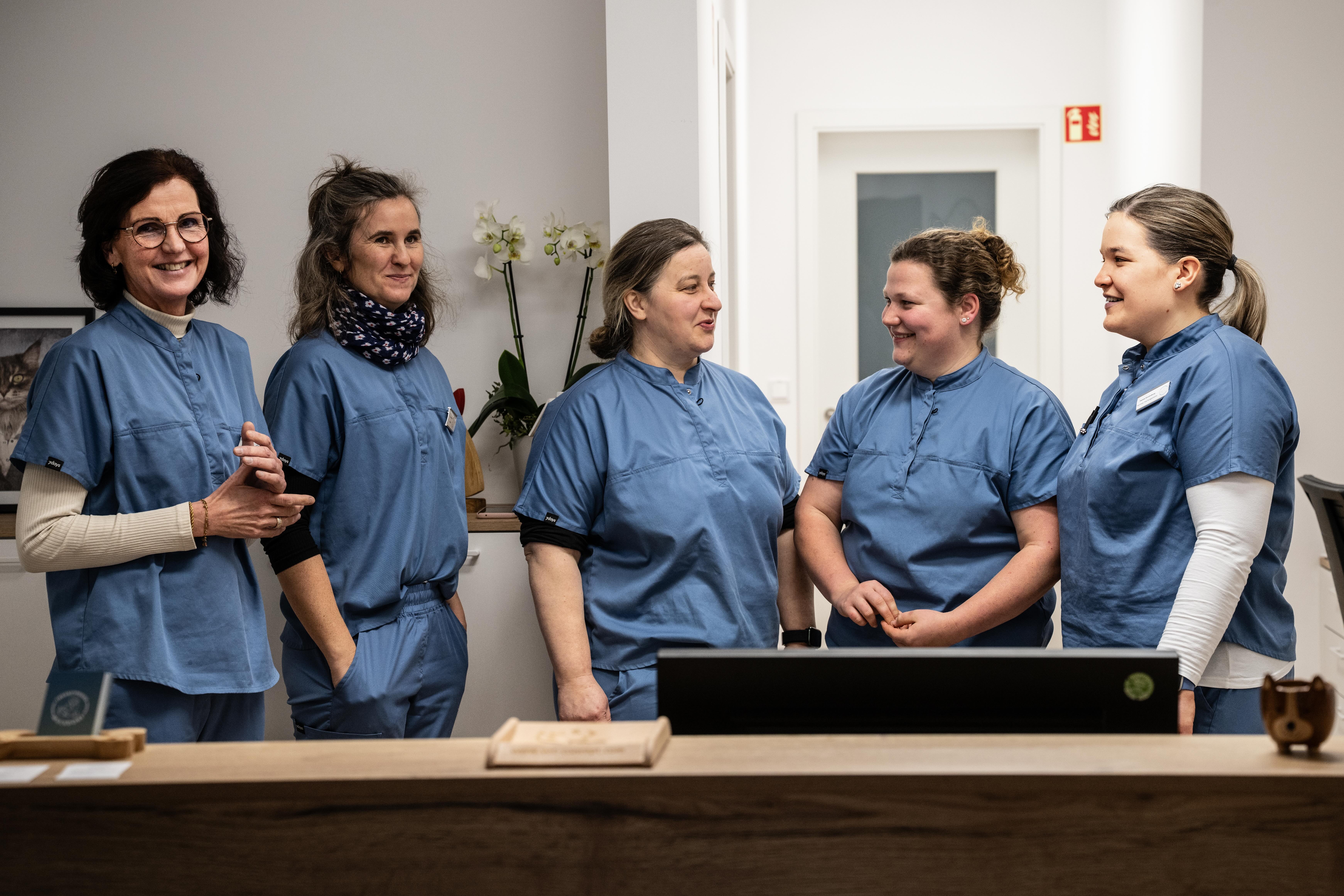 In der Summe bringen die drei Tierärztinnen 74 Jahre Erfahrung in der Behandlung von Kleintieren als gemeinsame Kompetenz in ihre Praxis ein. Für die vierbeinigen Patienten und auch für ihre Besitzer:innen ist das ein beruhigender Faktor - sie treffen in der Tierarztpraxis Wulsdorf auf ein routiniertes Team. „Tiere können uns ja leider nicht erzählen, wo es ihnen wehtut und was ihnen fehlt“, sagt Simone Tenhagen-Holscher mit einem spürbaren Bedauern in der Stimme. Das über Jahre erworbene Einfühlungsvermögen zahlt sich aus, denn die Tierärztinnen müssen ihre Patienten genau beobachten, anhand der Symptome gezielt und sorgfältig untersuchen - und nebenbei noch auf Frauchen oder Herrchen achten, die das Unwohlsein ihres tierischen Lieblings häufig noch mehr quält als das Tier selbst.