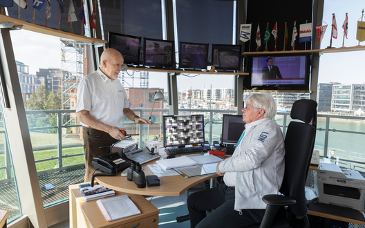 Wer im Leitstand Dienst hat, muss stets aufmerksam sein. Konzentriertes Arbeiten unter besonderen Rahmenbedingungen ist den zehn Mitgliedern des Schleusenteams nicht fremd – im Gegenteil: „Wir sind alle selbst als Nautiker zur See gefahren“, berichtet Peter Burhorn. Der 84-Jährige war Kapitän auf Großer Fahrt, dann arbeitete er als Inspektor für eine der ersten großen Containerreedereien. Nach der Pensionierung blieb er der Seefahrt treu – nicht nur als Sprecher des Teams sondern auch viele Jahre als Kapitän auf dem legendären Großsegler „Alexander von Humboldt“ und ihrer Nachfolgerin, die unter Windjammerfreunden kurz „Alex 2“ genannt wird. Carsten Johannssen versorgte bis zur Rente die Containerschiffe in Bremerhaven per Bunkerboot mit Treibstoff. Kaum war er im Ruhestand, heuerte er bei der Schleuse an. „Das ist eine tolle Aufgabe; und so bleibe ich mit der Seefahrt in Verbindung.“